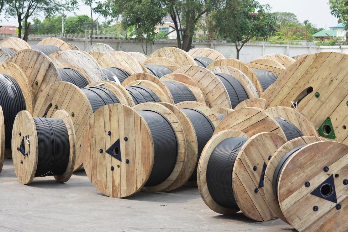 High-strength wooden reels designed for the transport and storage of electrical, fiber-optic, and industrial cables. Built to withstand heavy loads, ensuring safety and protection during handling, export, and installation.